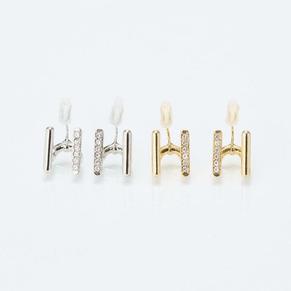 小さめのピアスをふたつ重ね着けしているように見える、新しいシルエットのイヤリングです。