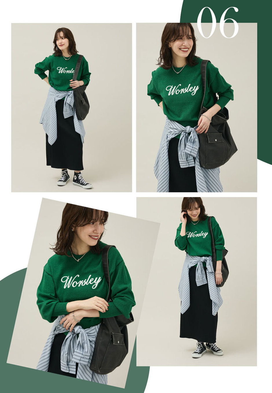 今年注目のシャツ腰巻きスタイル。いつものコーデに取り入れるだけでメリハリもプラスできるのでおすすめです!ロゴニット×リブスカートのカジュアルなスタイルも、ストライプ柄のシャツを取り入れることで洗練された雰囲気に仕上がります。