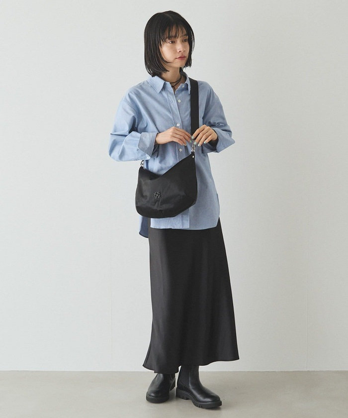 ナイロンバッグはカジュアルなイメージもありますが、通勤で持つとなるときれいめ要素が欲しいところ。