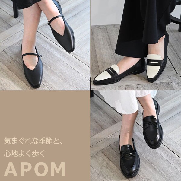 〈APOM〉の防水シューズなら、初秋の街歩きも雨を気にせずスタイリッシュに楽しめます。