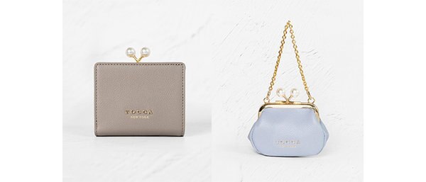 口金のパールアクセントがフェミニン。小さな小物入れは小銭入れとしても◎