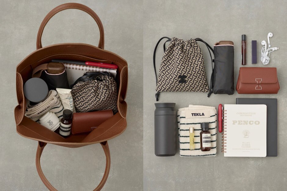 あえて中身を少なめにしてくたっと持つのも素敵。また、A4サイズやパソコンも収納できるので、通勤にもおすすめです。