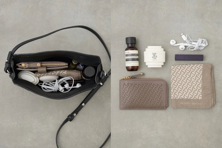 コンパクトな見た目ながら、二つ折り財布やスマホがすっきり収まる隠れた収納力も魅力です。