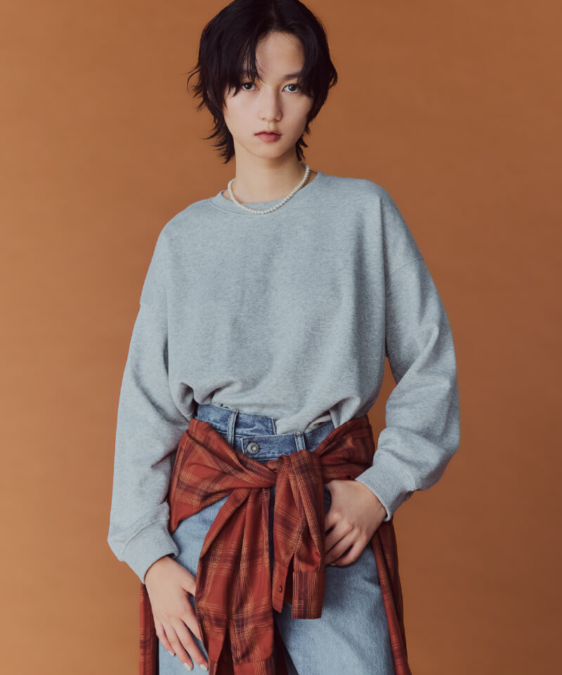 メンズライクなゆったりとしたシルエットと、肌触りの良い落ち感のある素材で着心地も快適。
