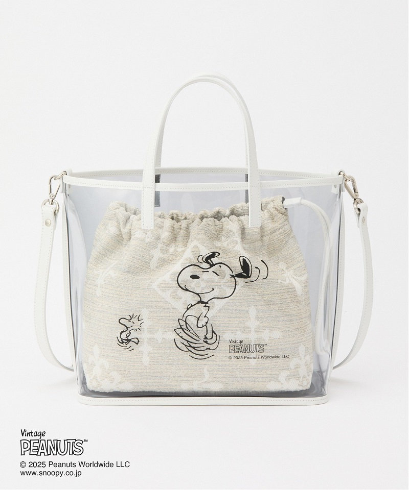 ビニールバッグにはスヌーピー&ウッドストックの愛らしいプリントを施し、遊び心のあるアクセントに。