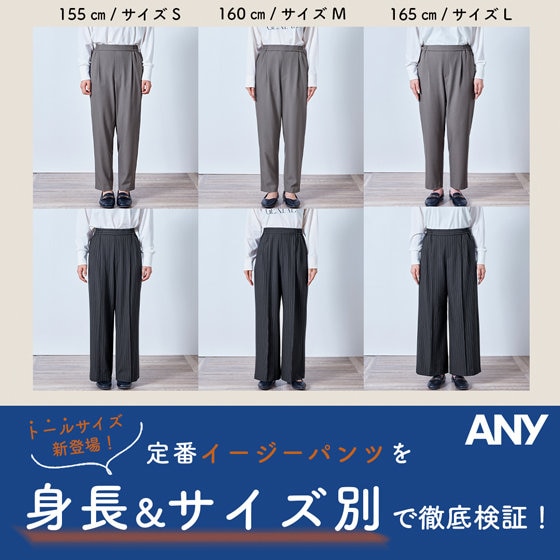 ANY定番の“イージーパンツ”を155cm・160cm・165cmのスタッフが身長別&サイズ別で徹底比較!あなたにぴったりのサイズ感を見つけてみてください。