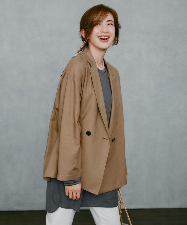 カットソー×パンツのワンツーコーデも、ゆる軽ジャケットさえあれば今っぽい!自宅で洗えてシワになりにくいから、気楽にヘビロテできるのも嬉しい。