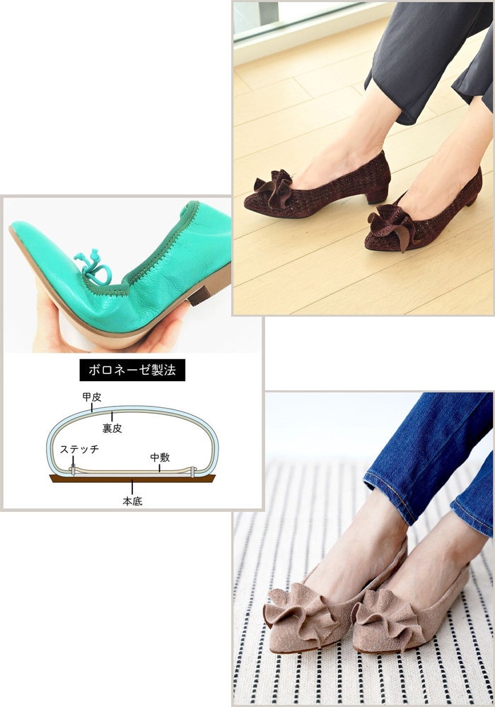 新色追加【本革・高反発】Ruffles ポインテッドトゥ ヒールパンプス