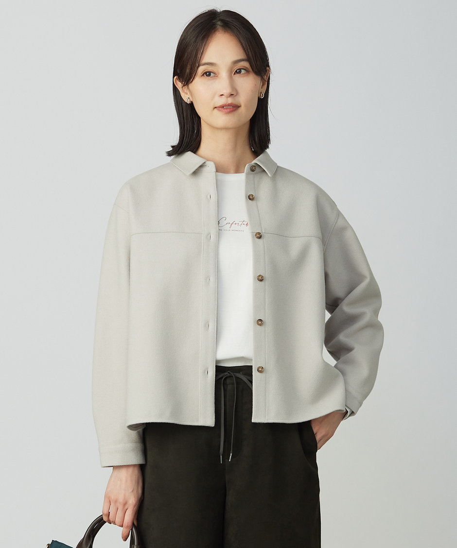 あたたかみのあるウールMIXの糸を使用し、起毛を施した素材で作られたシャツ。柔らかく丸みのあるシルエットで、身体のラインを自然とカバーしてくれます。ほどよくハリ感もあり暖かいので、インナー次第で今から真冬まで着用可能な、長い期間着用できるアイテムです。