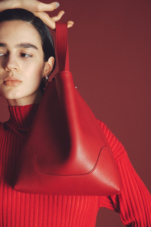 上質なレザーを使用したバッグシリーズは、キーカラーのレッドの展開もございます。