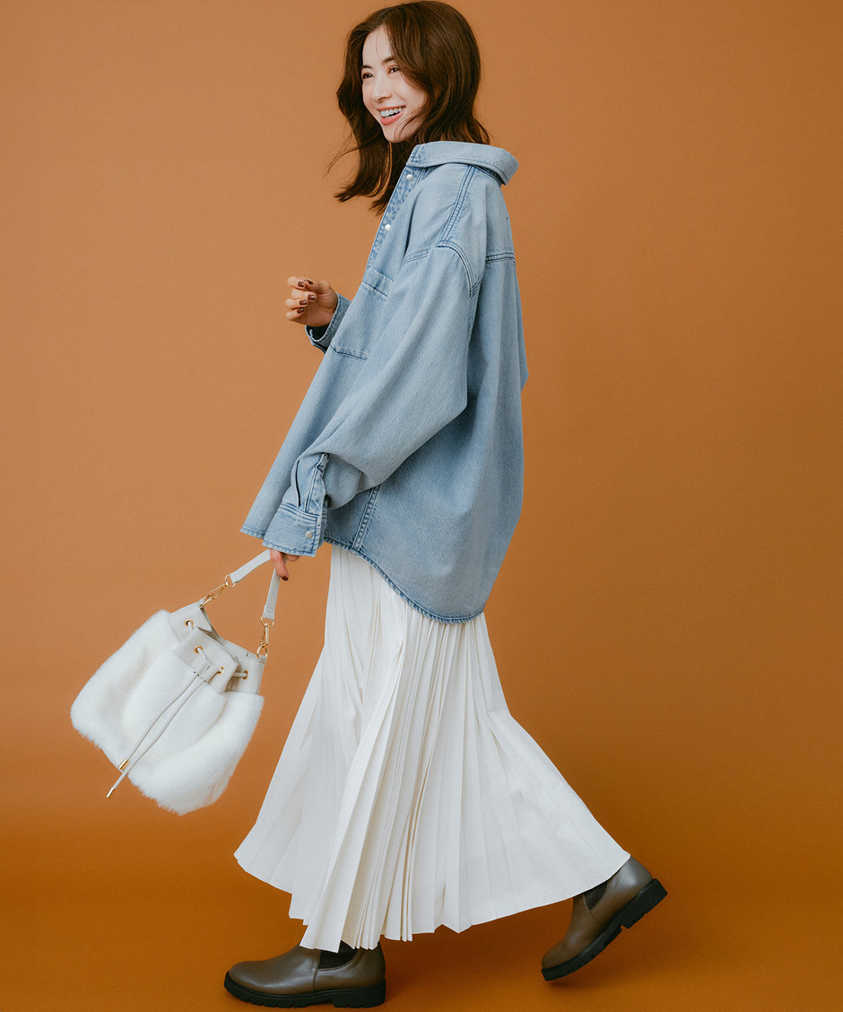 今の時季からはもちろん、寒い時季にロングコートやダウンなどのアウターと合わせても映えるカラー。