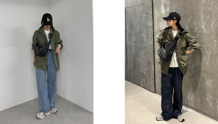 ソフトレザーラウンドショルダー着用比較(スタッフ身長163㎝)