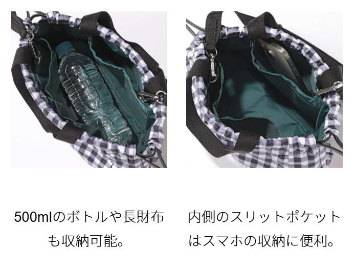 トレンド感のあるドロストデザインはハンドバッグとしてやショルダーバッグとしても2WAY でお使いいただけます。