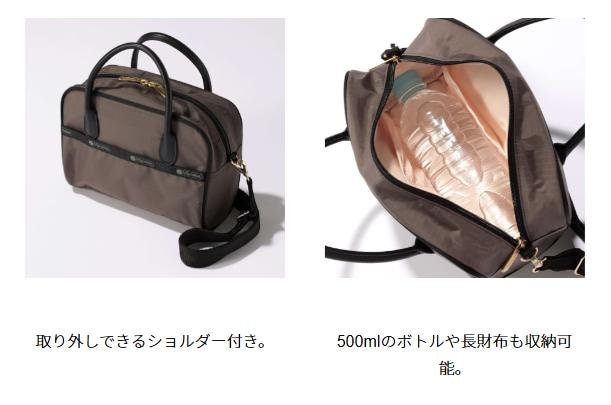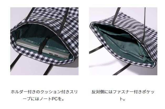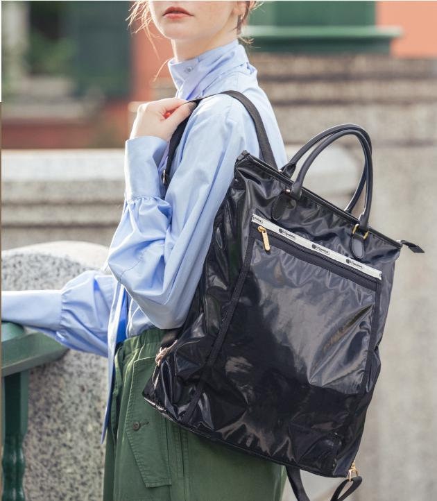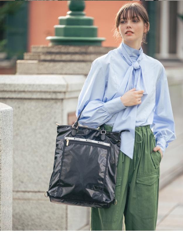ハンドルやドロストなどの一部にシンセティックレザーを使用し、上品さを演出。