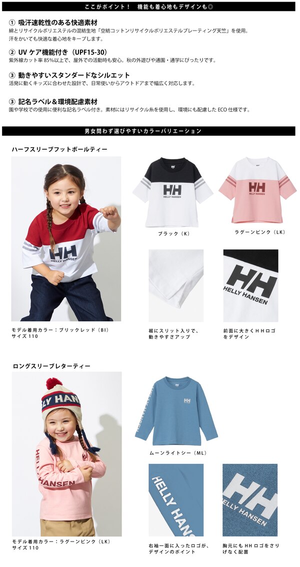 季節の変わり目に重宝するロングスリーブTシャツは、肌寒い日にも一枚で快適に過ごせる頼れるアイテム。HELLY HANSENのキッズ用ロングスリーブTシャツは、動きやすさと快適さを兼ね備えたスタンダードなシルエットで、通園・通学から外遊びまで幅広く活躍します。素材にはコットンとリサイクルポリエステルの混紡生地を使用し、ナチュラルな風合いと吸汗速乾性を両立。UVケア機能(UPF15-30)も備えており、紫外線対策も安心です。袖に施された大胆なブランドロゴがデザインのアクセントとなり、シンプルながら存在感のある仕上がりに。さらに、記名ラベル付きで園や学校での使用にも便利。環境に配慮したECO素材を採用し、サステナブルな選択肢としてもおすすめです。秋のワードローブに加えたい、機能性とデザイン性を兼ね備えた一枚です。