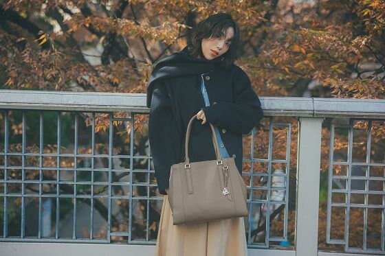 バッグ口元のメタルフックを留めることで、フォルムの変化も楽しめます。