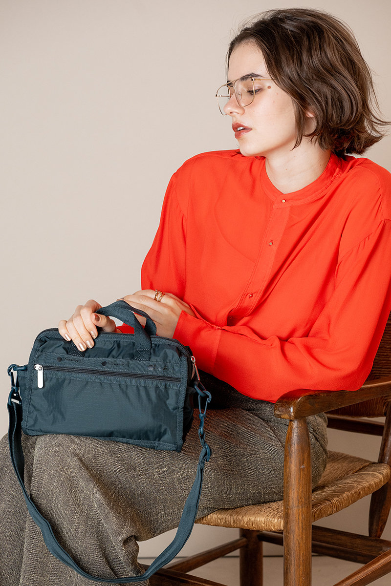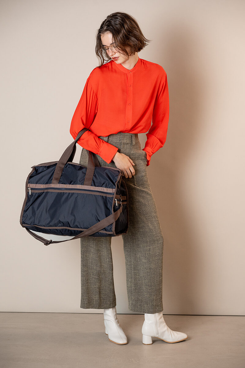 バイカラーシリーズでは初となるボストンバッグ。ダークネイビーとブラウンでシックな印象に。