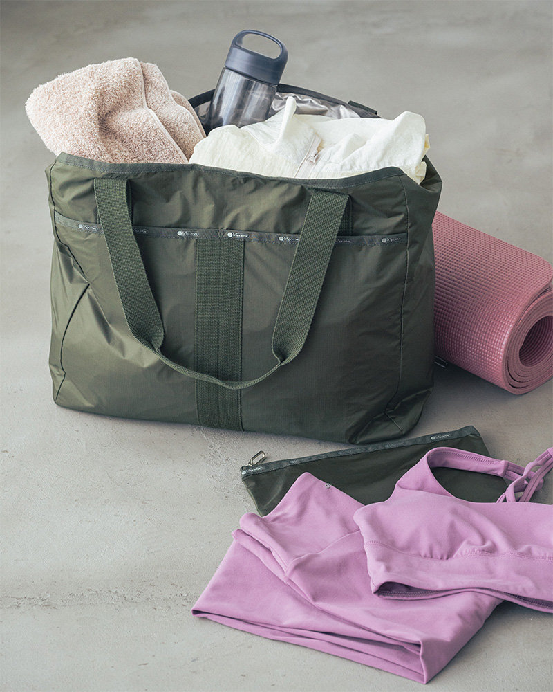 超軽量のビッグトートなら、運動後の着替えやメイク直しの荷物もスマートに持ち運び可能。