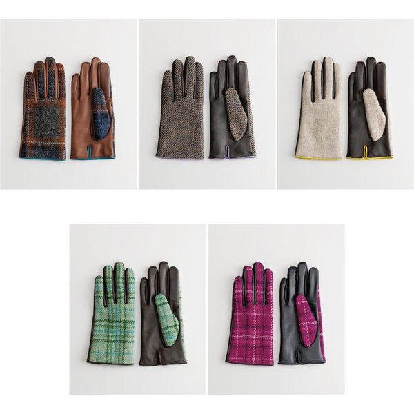 柔らかな羊革と上品なチェックや無地のツイードで、手元に華やかさと心地よさをプラス。