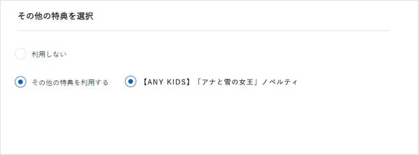 「その他特典を利用する」⇒「【ANY KIDS】「アナと雪の女王」ノベルティ」を選択してください。