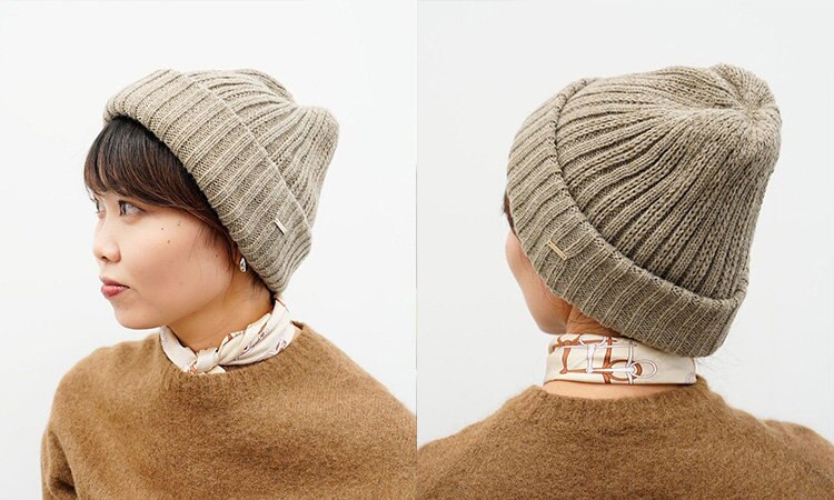 柔らかな手触りの、イタリア糸を使用したニット帽です。本体部分と折り返し部分がデザイン違いのリブになっていて、動きのある見え感です。素材感が軽めのニット帽子なので、屋内で被ってもスッキリ。しっかり温かみもあって、秋冬のコーディネートとも相性◎