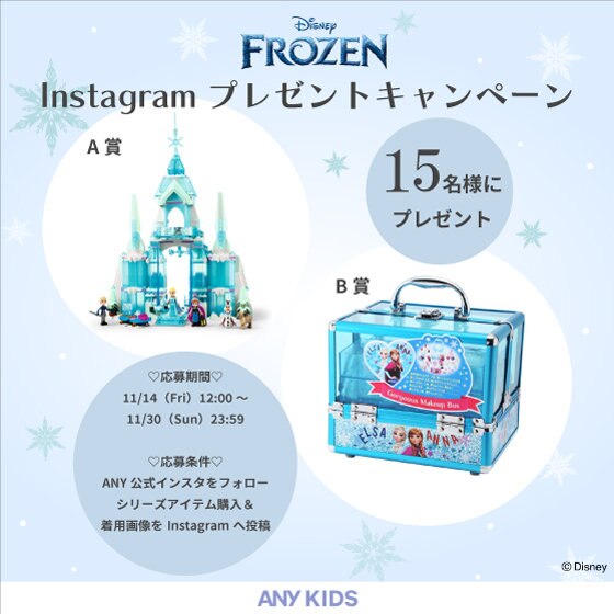 ANY KIDSより、『アナと雪の女王/家族の思い出』シリーズの発売を記念してInstagramプレゼントキャンペーンを開催いたします。