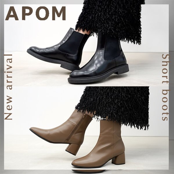 シンプルなデザインが魅力のAPOMのショートブーツ。