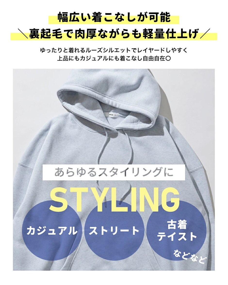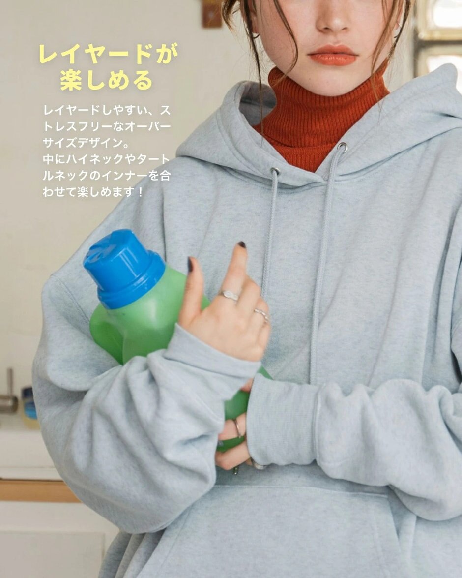 シンプルながら上品な印象を与える、裏起毛スウェットパーカー。