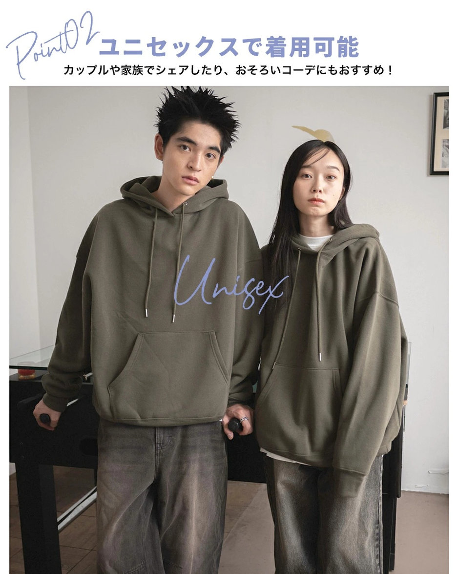 ユニセックスで着られるため、パートナーとのリンクコーデにもおすすめ。