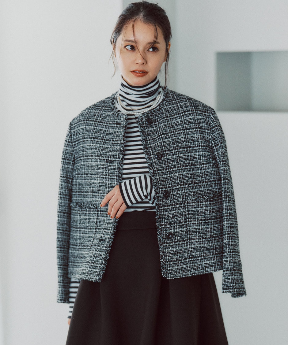 セレモニーや母行事にも対応できる、華やかツイードは大人のマストアイテム。