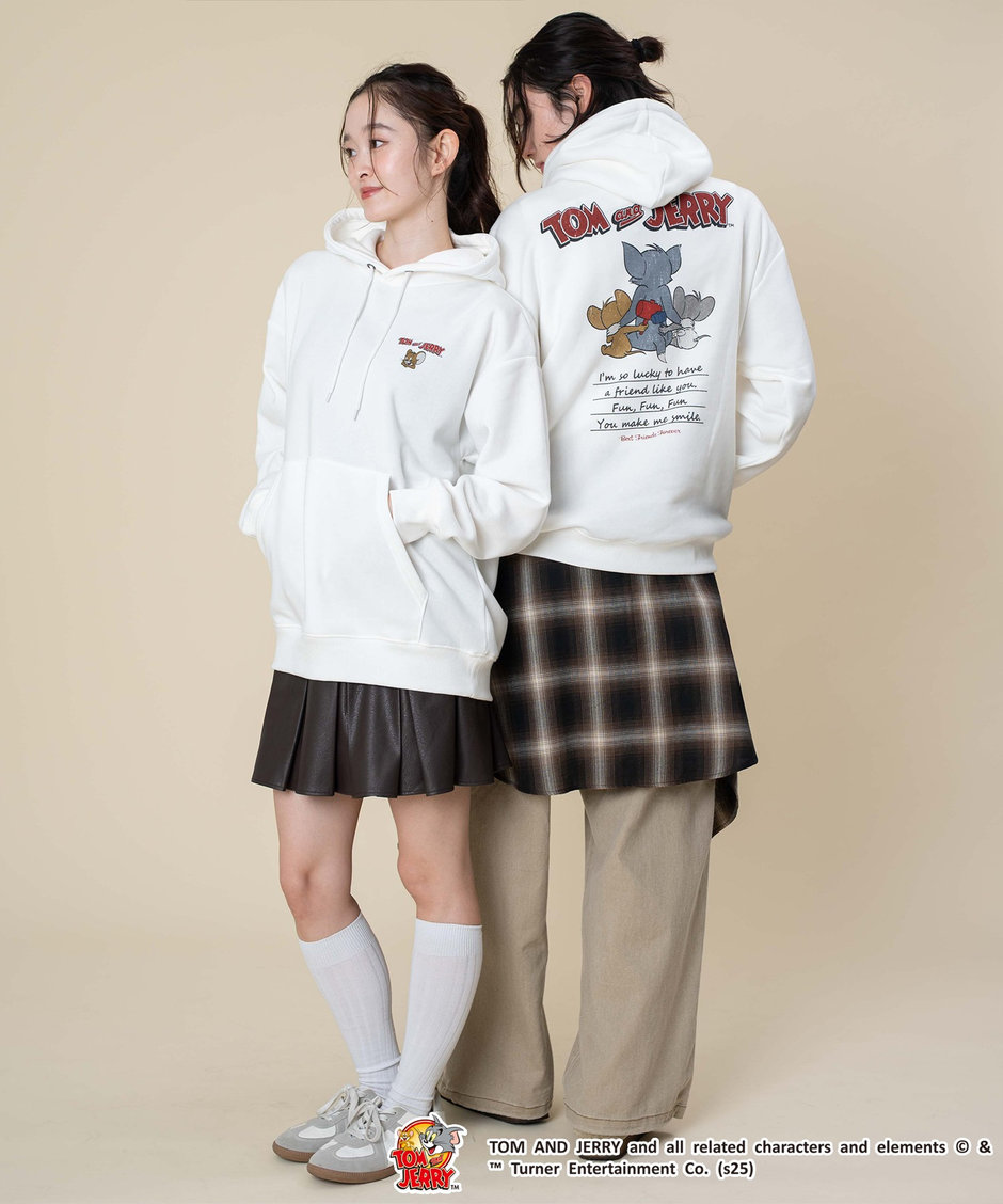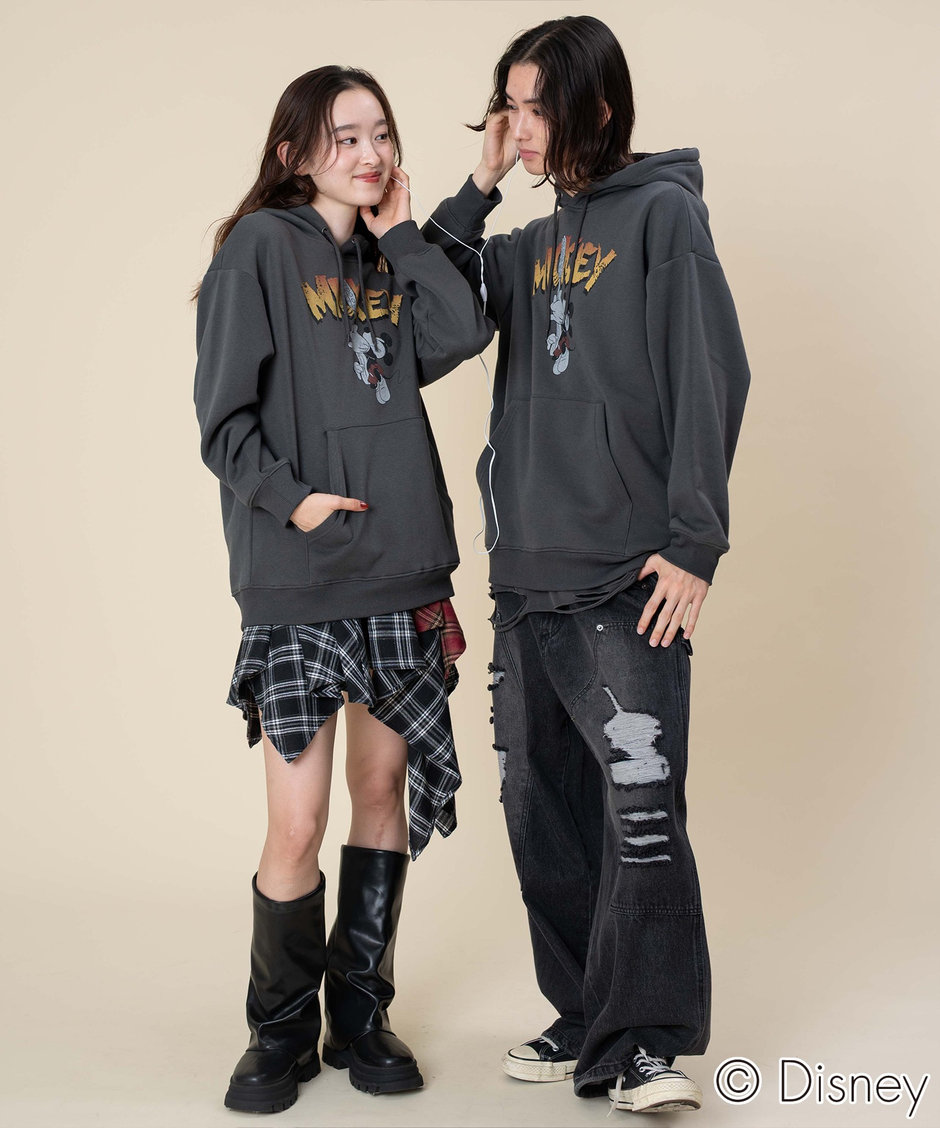 人気キャラクターのグラフィックが映える裏起毛パーカー。