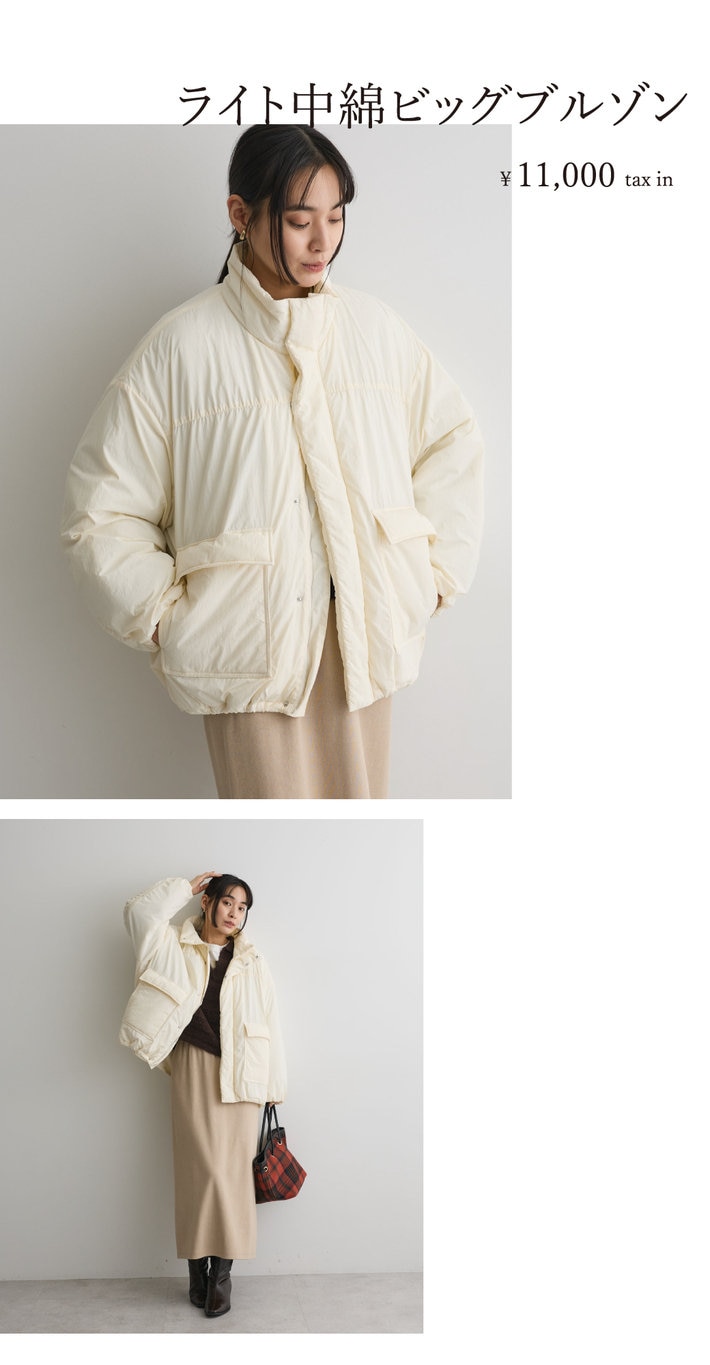 軽やかなナイロン素材で、暖かさと心地良さを追求したライト中綿ビッグブルゾン。