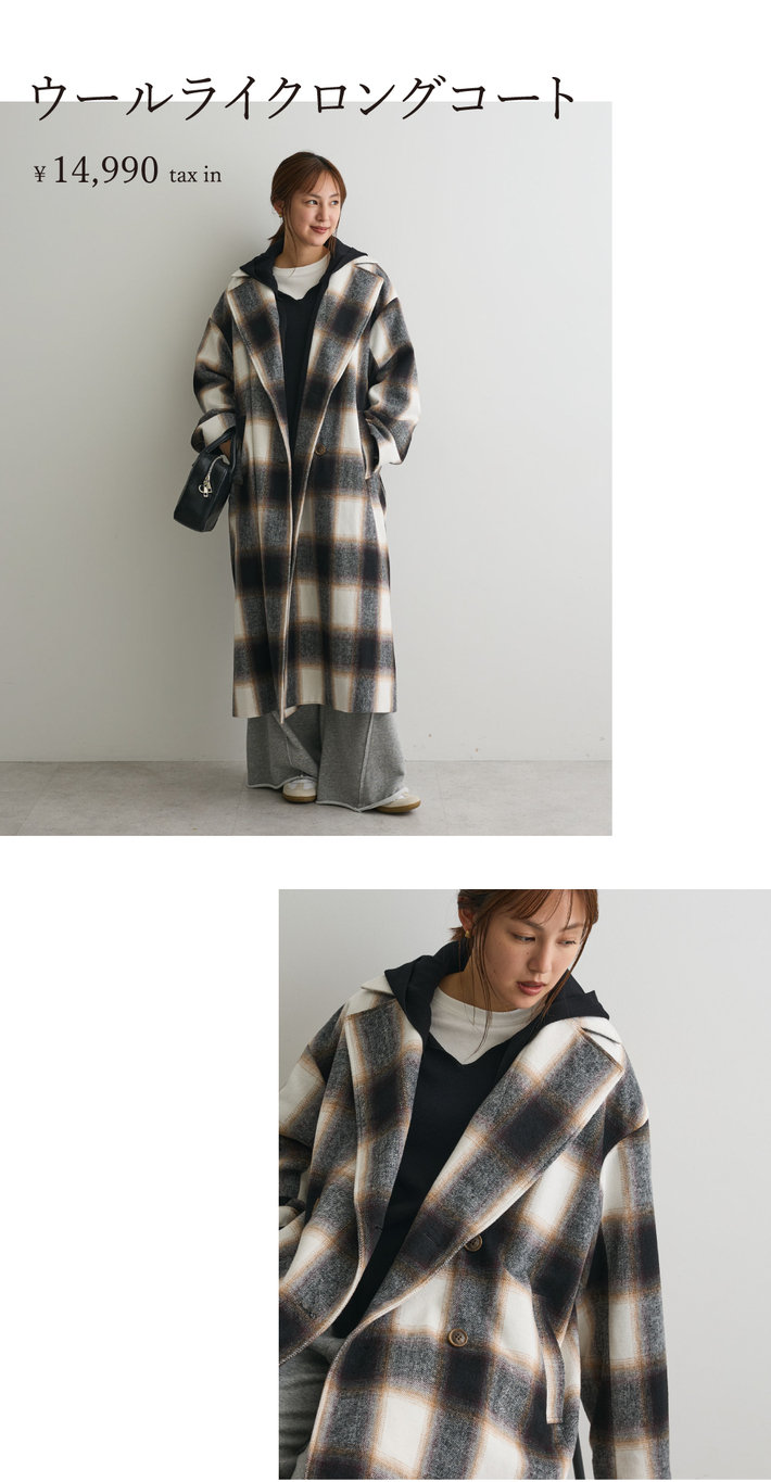 柔らかなウールライク素材が優雅な印象を与えるロングコート。