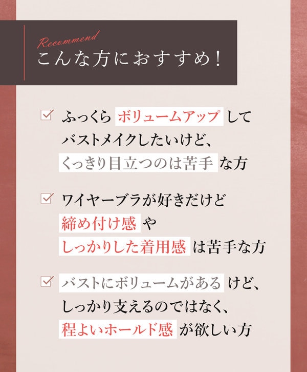 ナチュラルアップブラはふっくらボリュームアップしてバストメイクしたいけど、くっきり目立つのは苦手な方へおすすめです。