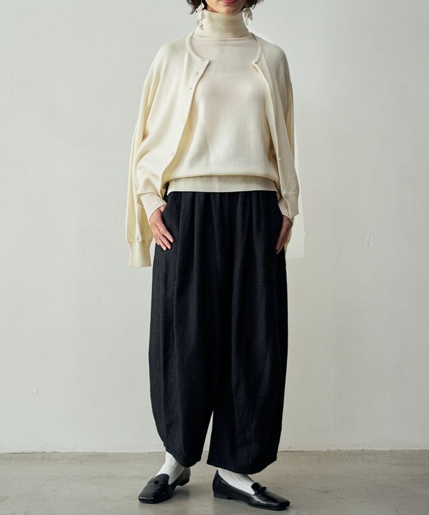 ・ボトムス リネンウールの裾タックワイドパンツ