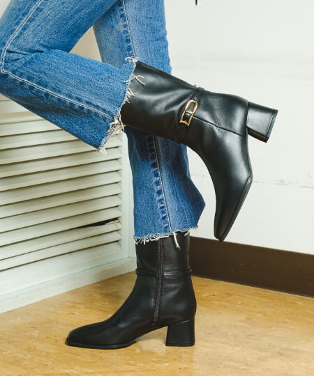 ややスクエア寄りのトゥラインがモードな空気を纏わせ、パンツにもスカートにも好相性。
