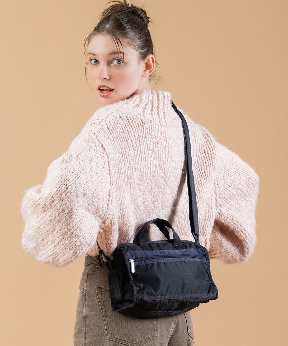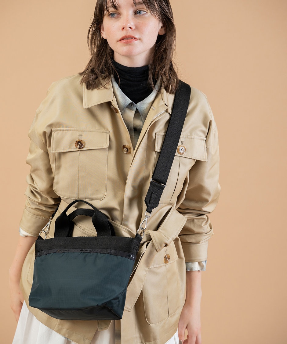 シックで深みのある「ディープシーブルー」。取り外しできるショルダー付きのミニボストンは500mlボトルや長財布が入るサイズ感。