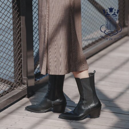 ウエスタンブーツのテイストをベースにしながら、ポインテッド気味のスマートなトゥと