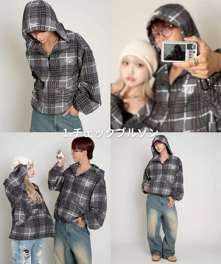 チェックロゴフードブルゾン