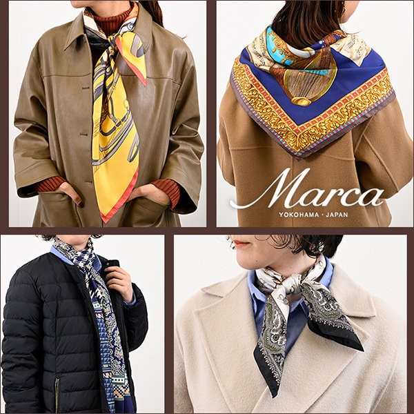 より、この冬の装いを華やかに彩るスカーフコーディネートのご紹介です。アウターとの組み合わせ次第で、スカーフはコーディネートの主役にもアクセントにもなる万能アイテム。こだわりの柄と上質なシルクが、冬の装いに洗練された表情をプラスします。ぜひチェックしてくださいね。