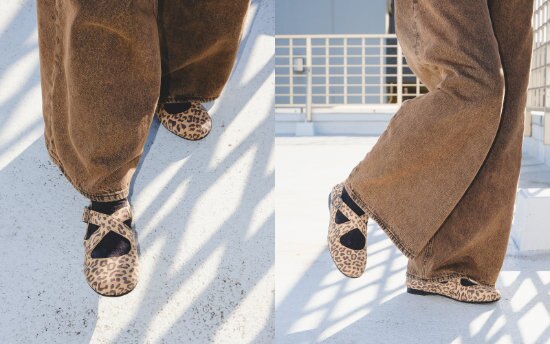 バレエシューズのような軽快さに、モードな空気をひとさじ加えたクロスバブーシュ。