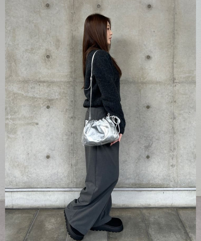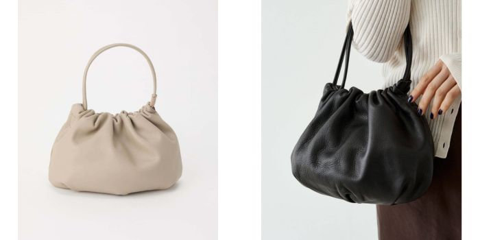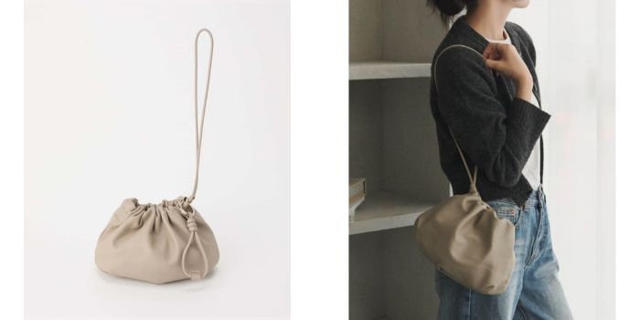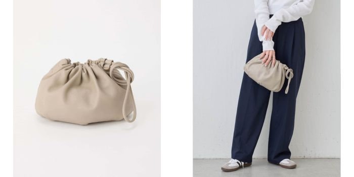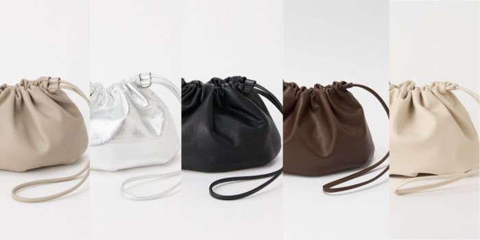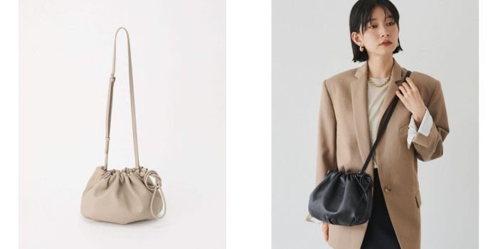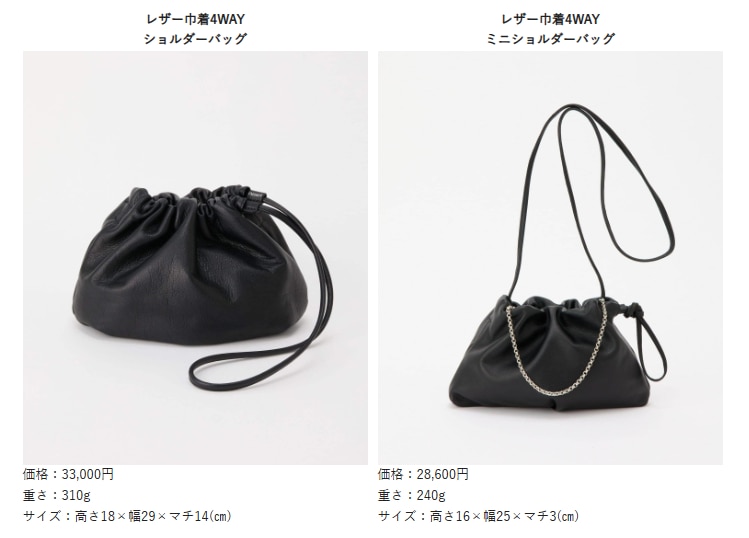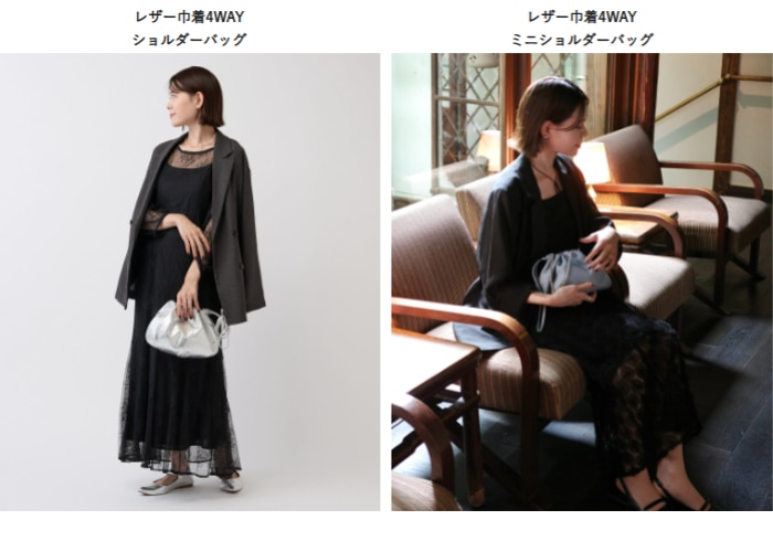 オケージョンシーン着用イメージ比較レザー巾着4WAYショルダーバッグは、