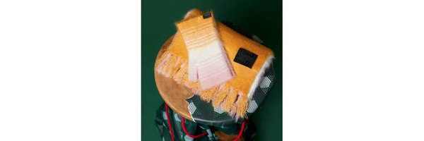 ふんわりとしたモヘアやカシミヤブレンドのマフラー、指先の繊細な動きを妨げないフィンガーレスグローブ、