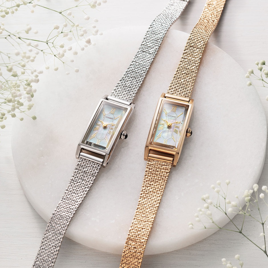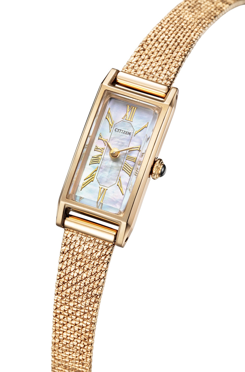 小さいけれど、光発電エコ・ドライブ搭載の賢い腕時計です。ギフトに喜ばれそうなコロンとした可愛らしさ、アクセサリー感覚で使用できるデザインが魅力です。日常使いはもちろん、和装やパーティシーンにも華やかさを添えます。