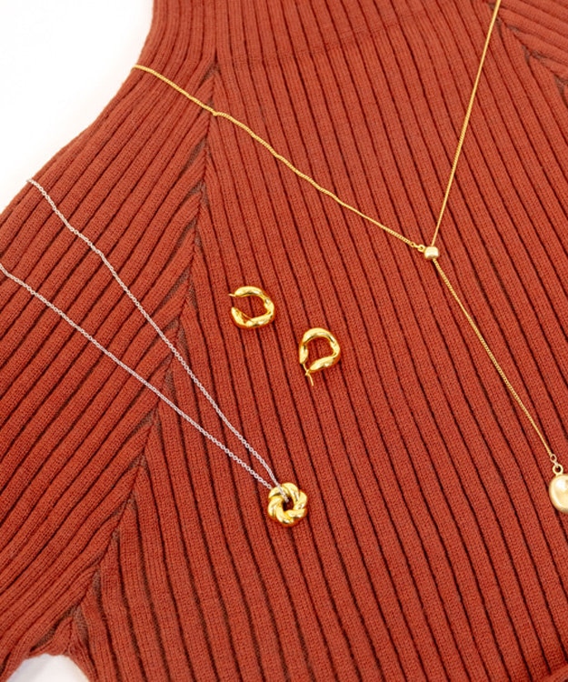ドーナツみたいな渦巻きフォルムが愛らしいネックレス。優しい印象でイヤーカフやピアスとのセット使いも◎。シンプルなニットやワンピに合わせれば、ホリデーシーズンのスタイルを華やかにアップデート。おすすめのご褒美アイテムです。