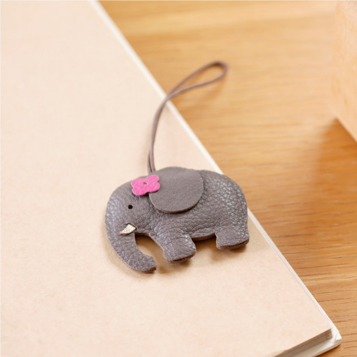 バッグの製作過程で生まれる端革を、かわいらしい動物モチーフのチャームに仕立て、リボンとともにギフトに添えた特別仕様。