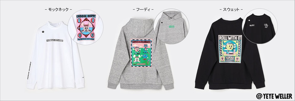 そんなポップで楽しむことの大切さをアートで届けている彼らと、私たちブランドのコンセプト「POP&WIT&YOU(ゴルフをもっとポップでカジュアルに楽しもう)」の世界観が一致し、オリジナルキャラクターの描き起こしコラボが叶いました。