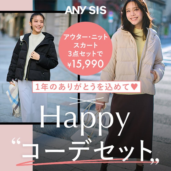 幸せ呼び込む「HAPPYコーデセット」の中身は…中綿アウター・ニット・スカートの豪華3点セット!