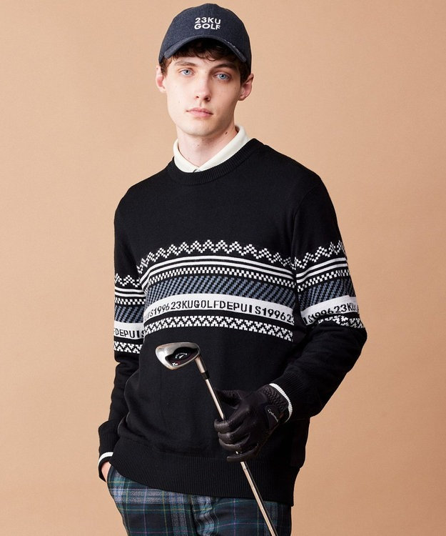 【MEN】【ウォッシャブル】グラフィックダブルジャガードニット