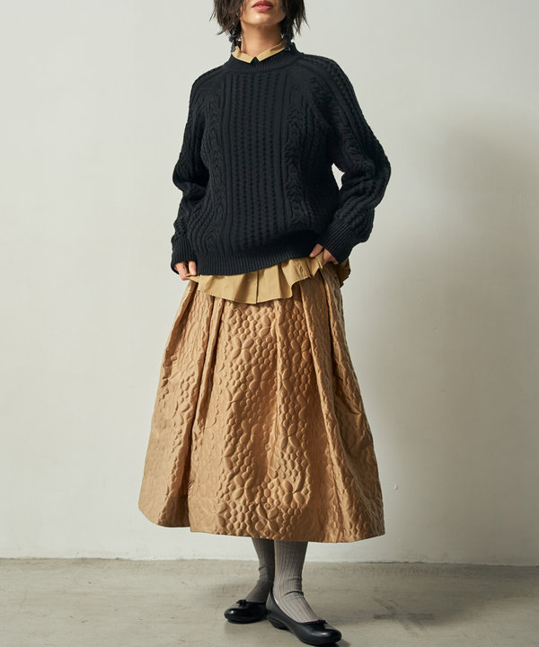 3種類のケーブル模様編みによる浮き上がるような編み目は上品かつモダンで、洗練された印象です。